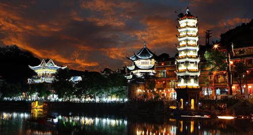 下午安排:乘車赴【芙蓉古鎮(zhèn)】(贈送門票、景區(qū)環(huán)保車和酉水畫廊已含),山水如畫,多情的酉水養(yǎng)育了世世代代的土家兒女,也造就了沿岸動人的風(fēng)光,酉水畫廊納含著芙蓉鎮(zhèn)的草木、山水、人兒,一道道美麗的彩虹是它編織的最美西蘭卡普。這里得酉水舟楫之便,上通川渝,下達洞庭,素有“楚蜀通津”之稱。因謝晉執(zhí)導(dǎo),劉曉慶、姜文主演的電影《芙蓉鎮(zhèn)》在此取景而出名,于是人們便把此地叫做芙蓉鎮(zhèn)。時代變遷,歷久彌新,更因其獨特的原始人文,靜謐山水成為新時代湖南旅游新寵。芙蓉古鎮(zhèn)大瀑布,酉水碼頭繁華依舊!乘車赴神秘湘西深處鳳凰古城,這里被譽為遠去的家園,夢中的故鄉(xiāng),邂逅邊城的燈火闌珊,品味獨特的夢里苗疆。游覽被新西蘭著名作家路易艾黎稱贊為中國最美麗的小城--【鳳凰古城】,體驗和感受鳳凰古城的九大精華:一座青山抱古城、一泓沱水繞城過、一條紅紅石板街、一道風(fēng)雨古城墻、一座雄偉古城樓、一個美麗彩虹橋、一排小橋吊腳樓、一批聞名世界的人、一個國家級非遺文化遺產(chǎn)!