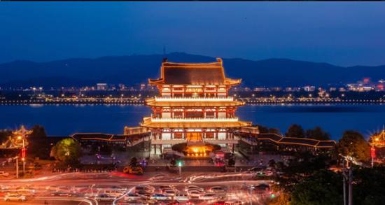 杜甫江閣位于湖南省長(zhǎng)沙市河?xùn)|城區(qū)西湖橋,地處湘江路中段和西湖路交界處,臨湘江為湘江風(fēng)光帶的一部分,與橘子洲、岳麓山隔江相望,距天心閣不足一千米。